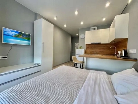 Данные апартаменты расположены в современном, новом комплексе, ЖК Гранд Бурже бизнес класса! Удобство и уют – неотъемлемые атрибуты этой квартиры. В ней комфортно могут проживать один-два человека. Спальные места: двуспальный диван. Квартира расположена на 14 этаже 18-этажного дома, работает лифт. Кухня укомплектована необходимой посудой и техникой. Имеется вай-фай, смарт ТВ.