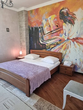 Просторная 1-комнатная квартира в центре города в новостройке для 1-4 гостей, светлая, с новым ремонтом и мебелью, с красивым видом из окон. Двуспальная кровать, раскладной диван, душевой бокс, свежая постель и полотенца, укомплектованная кухня с необходимой посудой, вся бытовая техника, круглосуточно горячая вода, индивидуальное отопление. Поблизости находится универсам "Колос", ТЦ "Майдан", продуктовый рынок, лечебные учреждения, Центральный парк культуры и отдыха и, конечно, центр неповторимого города Черновцы.