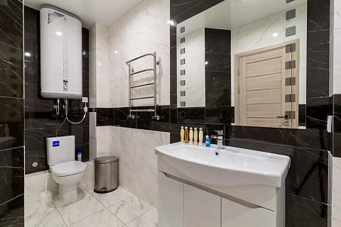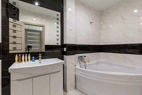 Квартира обладнана всією побутовою технікою. Пральною машинкою; в кожній кімнаті кондиціонер. ЖК телевізор. Посудомийна машинка; мікрохвильова піч. Варильна плита і духовка. Праска і фен, прасувальна дошка