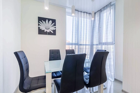 Роскошные 2-х комнатные апартаменты в новостройке на Европейской Площади, Дель Мар центр, в районе Мост Сити центра. Панорамный Вид на реку и на весь город. Огромная круглая ванна джакузи, 6 спальных мест. Новый ремонт. Кухня-гостиная; в комнате двуспальная кровать, в гостиной раскладные диваны. Квартира оборудована всей бытовой техникой: стиральной машинкой, кондиционером, телевизором, посудомоечной машиной, микроволновой печью, варочной плитой и духовкой, утюгом, феном, гладильной доской. Также есть высокоскоростной WiFi. Все банные и постельные принадлежности. Халаты и тапочки, шампуни. Круглосуточная охрана дома и подъезда и придомовой территории обеспечит Вашу безопасность! Паркинг под охраной в доме. Документы третьей группы для командировок. Курение разрешено только на балконе