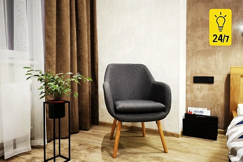 Cozy 3-room apartments with two bedrooms and a spacious kitchen-living room, designed for comfortable accommodation of 6 people, sleeping places 2 + 2 + 1 + 1, or 2 + 2 + 1 + 1 + 1. Located in the central part of the city in a new building, next to the TRC TSUM.<br /> The first bedroom has a double bed with an orthopedic mattress, a TV and thick curtains for a comfortable sleep. The second bedroom has 2 beds with an orthopedic mattress. All beds are made of natural wood. Living room-kitchen: a large fold-out corner with a comfortable double bed (210*180), a dining table for 6 people, an electric stove, a microwave oven, a refrigerator, an electric kettle and all the necessary utensils. The bathroom and toilet are separate. In the bathroom: a hair dryer, a dryer, an ironing board. High-speed Internet Wi-Fi. Balcony. Clean and fresh bed linen and towels. We also have autonomous heating and air conditioning, which will make your stay more comfortable!<br /><br /> Please note that upon check-in we take photos of the original documents and charge a cash deposit equal to one night's stay, which is returned upon check-out after checking the integrity of the property and provided that the guests did not smoke in the apartment.<br /><br /> The apartments are not rented for celebrations.