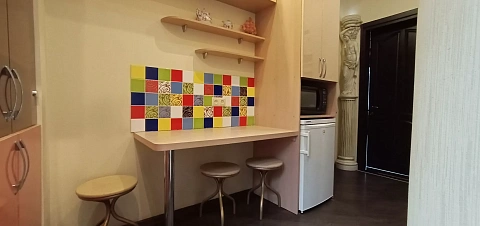 Квартира с евроремонтом. Две раздельные комнаты, двухуровневые потолки, раскладная двуспальная кровать, сложный свет, мягкий большой диван, большой ЖК телевизор, Wі-Fі, кондиционер, угловая ванна, современная кухня со встроенной техникой. Кабельное ТВ, СВЧ, эл.чайник, стиральная машинка-автомат. Газовая колонка-автомат. Стоянка рядом. Выдаем документы для командировочных.
