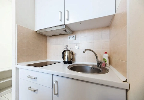 В вашем распоряжении будет мини-кухня с обеденной зоной и полным набором посуды для приготовления любимых блюд. В апартаментах установлена удобная двуспальная кровать с ортопедическим матрасом. Среди других удобств: кондиционер, бойлер, автономное отопление, микроволновая печь, холодильник, электрический чайник, варочная поверхность, утюг, гладильная доска, стиральная машина, телевизор со Смарт-TV и Wi-Fi, что обеспечит вам максимальный комфорт во время проживания. Мы также предоставляем постельное белье, банные принадлежности и набор для душа.