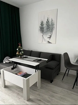 Просторная гостиная-студия с раскладным двуспальным диваном;