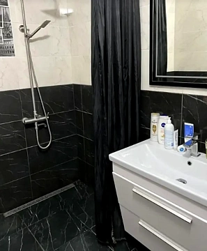Оснащение: кондиционер (в спальне), электроплита, встроенная духовка, стиральная машина, холодильник, посудомоечная машина, вытяжка, Wi-Fi, телевизор, бойлер, электрочайник, кофеварка, утюг, фен, гладильная доска, пылесос, необходимая посуда.
