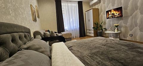 Почасово, посуточно, понедельно, помесячно сдаются апартаменты в центре города. 95 квартал, Соцгород, Дзержинка - в треугольнике от жилья. Уютная, красивая квартира со всеми удобствами. Рядом парк. Свежий ремонт. Есть подвальное помещение, которое используется как укрытие.
