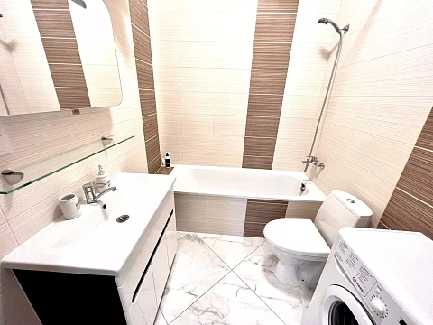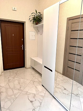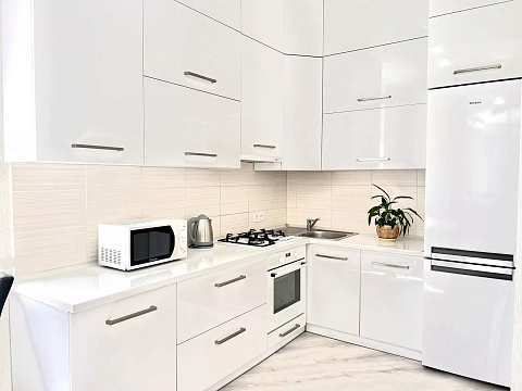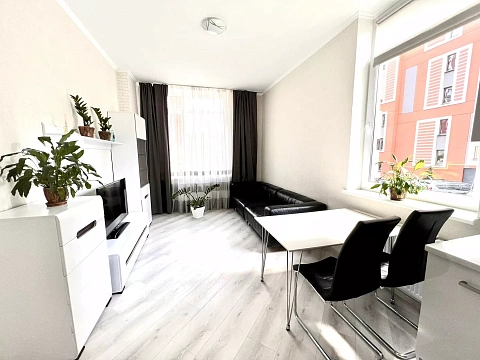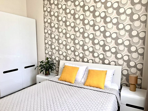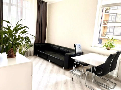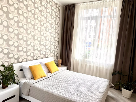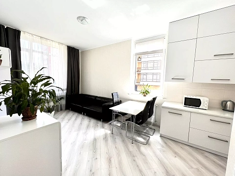 Однокомнатная квартира-студио, новостройка с хорошим, современным ремонтом. В квартире есть все необходимое для комфортного проживания посуточно или долго. В наличии: двуспальная кровать, раскладной диван, телевизор, газ. плита, холодильник, микроволновка, посуда. Сама территория ЖК закрыта шлагбаумами, есть возможность парковки авто, на территории есть сельпо, множество магазинчиков, кафе, пекарни, детские и спортивные площадки. До центра города 15 мин пешим ходом, или 3 остановки трамваем