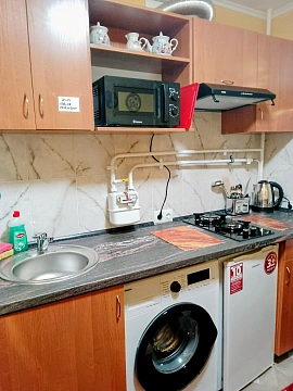 Все удобства: 3 кровати, кондиционер, стиральная машина, холодильник, микроволновая печь, варочная поверхность, утюг, фен, электрочайник, гладильная доска, интернет, кабельное телевидение.