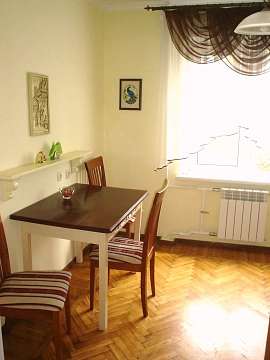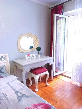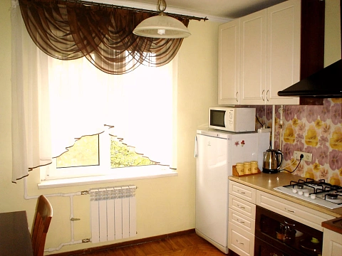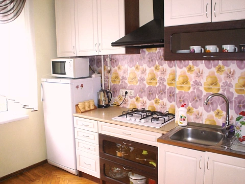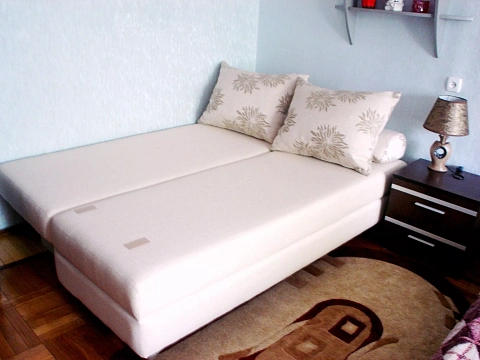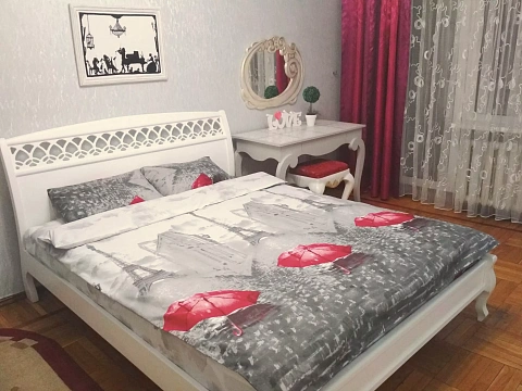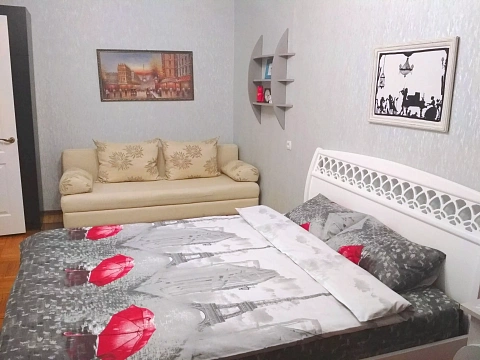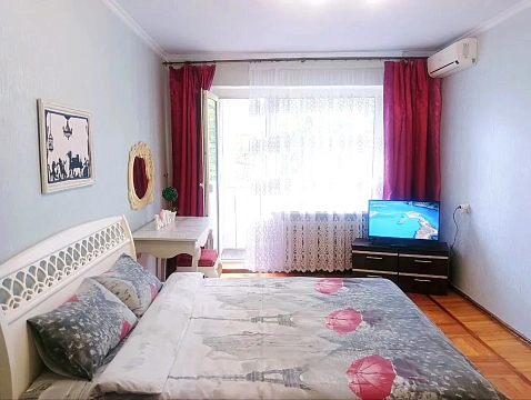 В квартире с комфортом могут разместится 4 человека, есть двуспальная кровать и раскладной диван-еврокнижка. Ремонт, мебель и техника – новые, есть кондиционер, WI-FI интернет, смарт ТВ, микроволновка, холодильник, стиральная машина-автомат, фен, утюг с гладильной доской. Горячая вода круглосуточно (бойлер на 100 л.) В пользование гостям предоставляются постельные принадлежности, полотенца, тапочки, посуда. Курить можно на балконе, в квартире курние запрещено.
