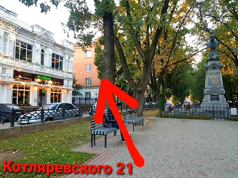Чистая, уютная квартира находится возле известного Котляревского памятника. Окна выходят на великолепный парк. Хотя квартира находится вблизи кафе и ресторанов – расположение тихое и уютное. Двор дома закрывается на ключ, где можно поставить свой автомобиль (сказать заранее).