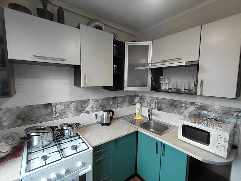 В квартире есть все для комфортного проживания: бытовая техника, постельные принадлежности, посуда.