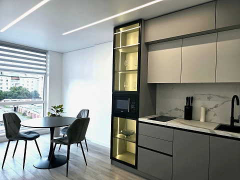 Комфортні і затишні апартаменти в самому центрі Івано-Франківська. Авторський дизайн, відмінне розташування, 5 хвилин до Ратуші і пішохідної вулиці-"стометрівка", а також всіх кращих ресторанів, ділових центрів і місць проведення всіх подій в місті. Поруч (400м) - міське озеро, біля якого розташований дитячий розважальний центр, а також міський парк. Біля будинку розташована невелика стоянка. Кухня обладнана всім необхідним для комфортного проживання. На вихідні і святкові дні ціну уточнюйте.