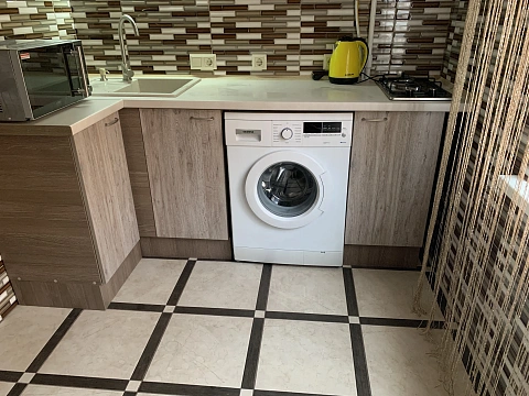 Побутова техніка: газова плита, холодильник, мікрохвильова піч, електрочайник, пральна машина, фен, праска, WiFi інтернет.