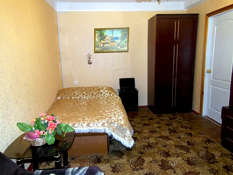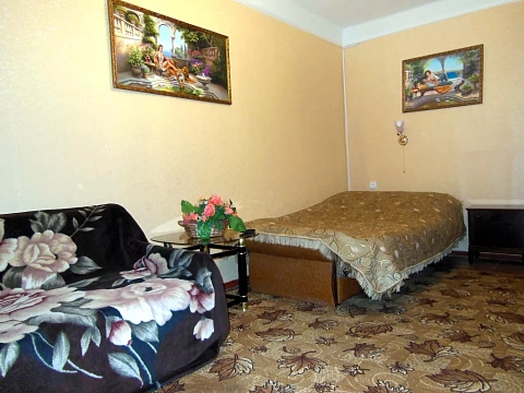 У кімнаті двоспальне ліжко і диван. Кількість спальнивх місць - 2+2.