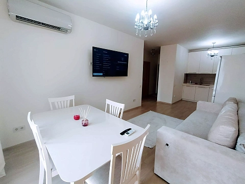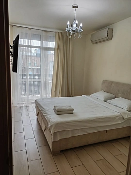 Подобова оренда затишної квартири. Квартира однокімнатна. Кухня студія і спальня. Балкон. Є двоспальне ліжко та розкладний ортопедичний диван. Користування кондиціонерами оплачується додатково і не входить до вартості проживання.