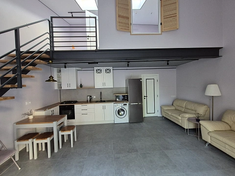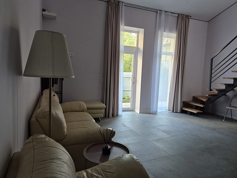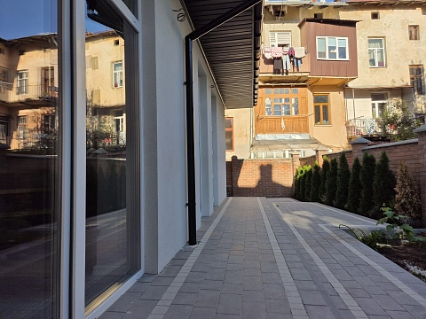 - Великий простір дворівневих апартаментів та свій дворик, тераса.