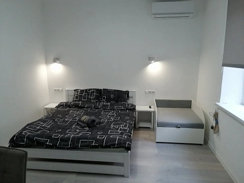 У квартирі 4 спальних місця (2+1+1) двоспальне ліжко та два великі розкладні дивани. Є загальний балкон на поверсі. Паркова біля будинку, також у квартирі є вся побутова техніка, WiFi, смарт-тв, кондиціонер тощо.