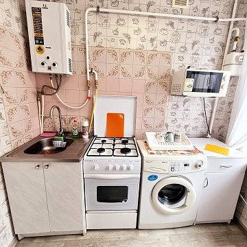 На кухні у вашому розпорядженні: газова плита та колонка; мікрохвильова піч; пральна машина; електрочайник, необхідне кухонне начиння: каструлі, тарілки, столові прилади, чашки, келихи для різних напоїв.