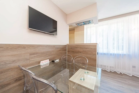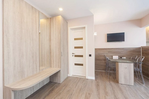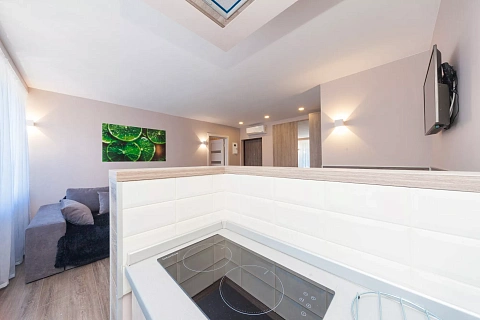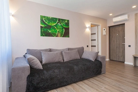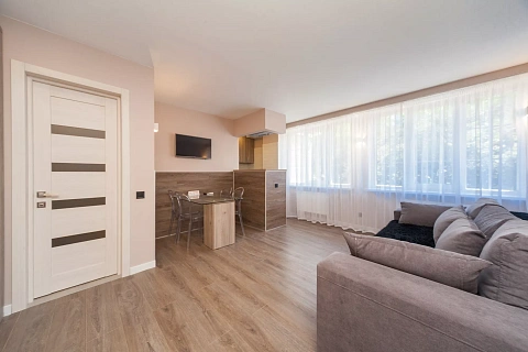 Дизайнерський ремонт 2018 року червень місяць, виконаний в скандинавському стилі, в світлих тонах VIP рівня. Квартира призначена для комфортного проживання 4-х гостей. Простора світла кухня-студія і окрема спальня. Автономне тепло і водопостачання. Все нове, меблі та техніка (ТВ супутникове, 2 ТВ плазмових, кондиціонер, мікрохвильова піч, пральна машина автомат, фен, праска). Інтернет Wi-Fi. Посуд, високоякісна постільна білизна, білосніжні махрові рушники, халати, лазневі приналежності, одноразове домашнє взуття.