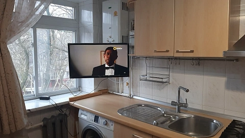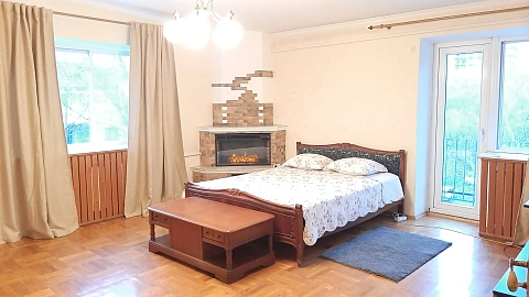 Свiтла простора квартира. 2 х кiмнатна перепланована в 1 кiмнатну. Велика площа 55м, кiмната 30м, кухня 13м. Тепла, затишна, з камiном, з паркетною пiдлогою, класичні дерев’яні меблi. В нiй є всi зручностi: холодильник, телевiзор з плоским экраном, пральна машина, праска, варильна поверхня, электродуховка, мiкрохвильова пiч. Гаряча вода вiд газовой колонки. Фен, змiнна бiлизна, кухонне придаддя, кабельне телебачення, wifi.