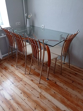 В квартирі зроблено ремонт, є всі необхідні меблі та предмети побуту для проживання 4 людей. Завжди чиста білизна та наявні засоби особистої гігієни. Біля будинку є власний закритий двір, з місцем для паркування авто. Також зручна розв'язка громадського транспорту до зупинки 2хв. Заселення в будь-який час!
