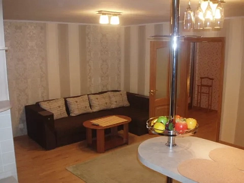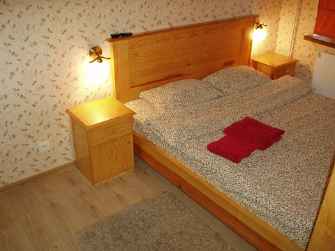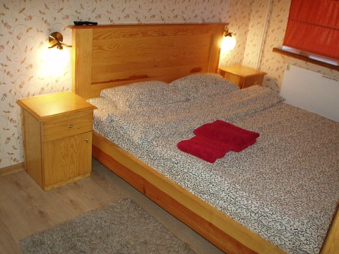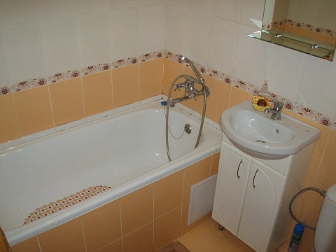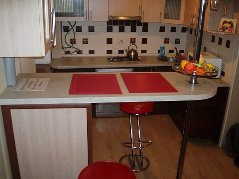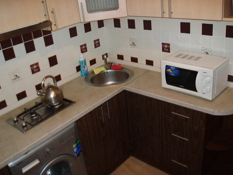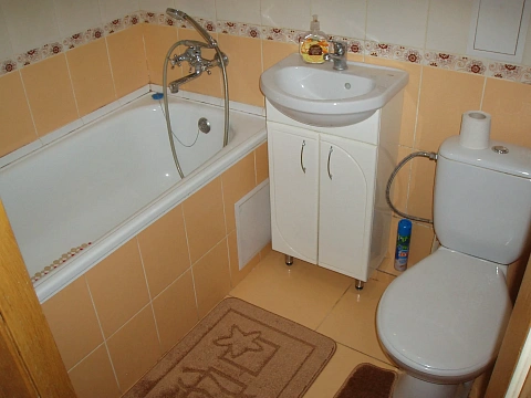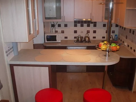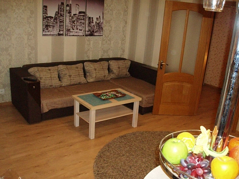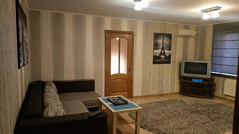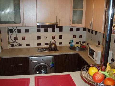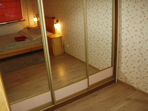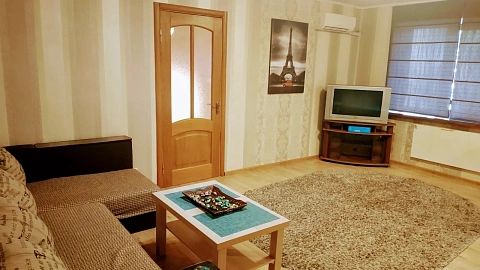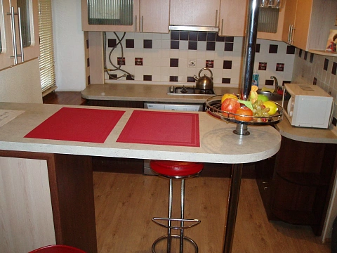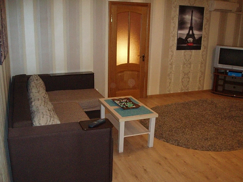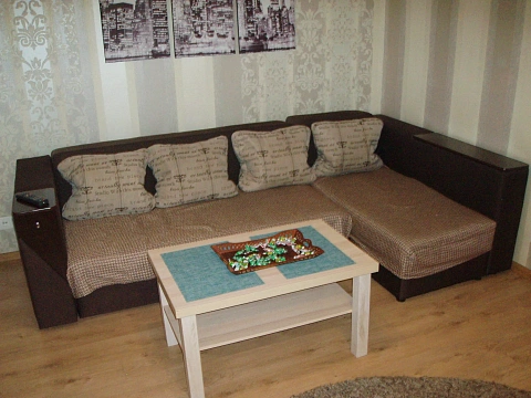 Спальня с большой кроватью с ортопедическим матрасом и с вместительным шкафом-купе. Квартира очень уютная с автономным отоплением, есть кондиционер. Гостиная оборудована большим телевизором (99 каналов цифрового кабельного телевидения), большим мягким уголком(дополнительно 2 спальных места).