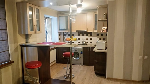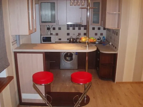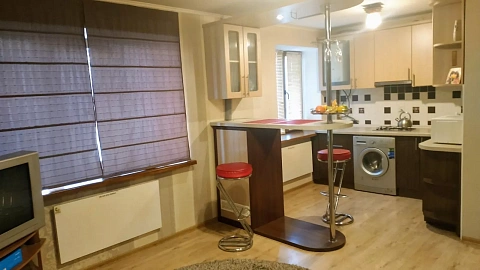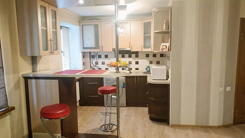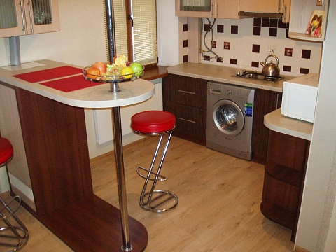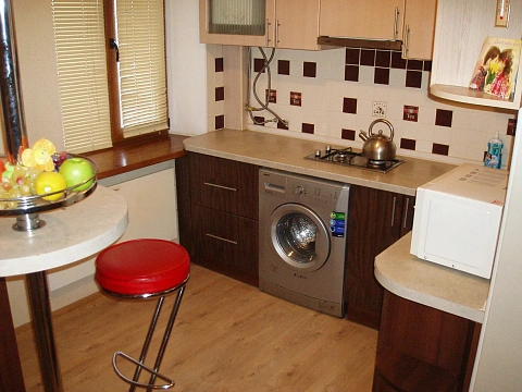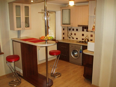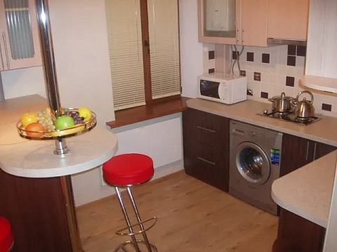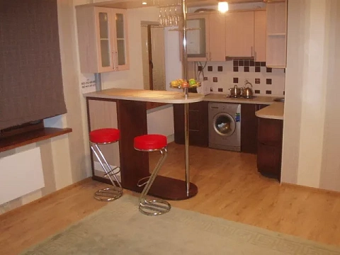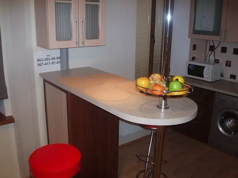 Кухня оснащена абсолютно всей новой бытовой техникой итальянского производства от микроволновки до стиральной машинки. Совмещенный санузел с новой ванной. Высокоскоростной интернет WI-FI. Цена 850-950 грн. в сутки. Почасово от 500 грн. на несколько часов в дневное время.